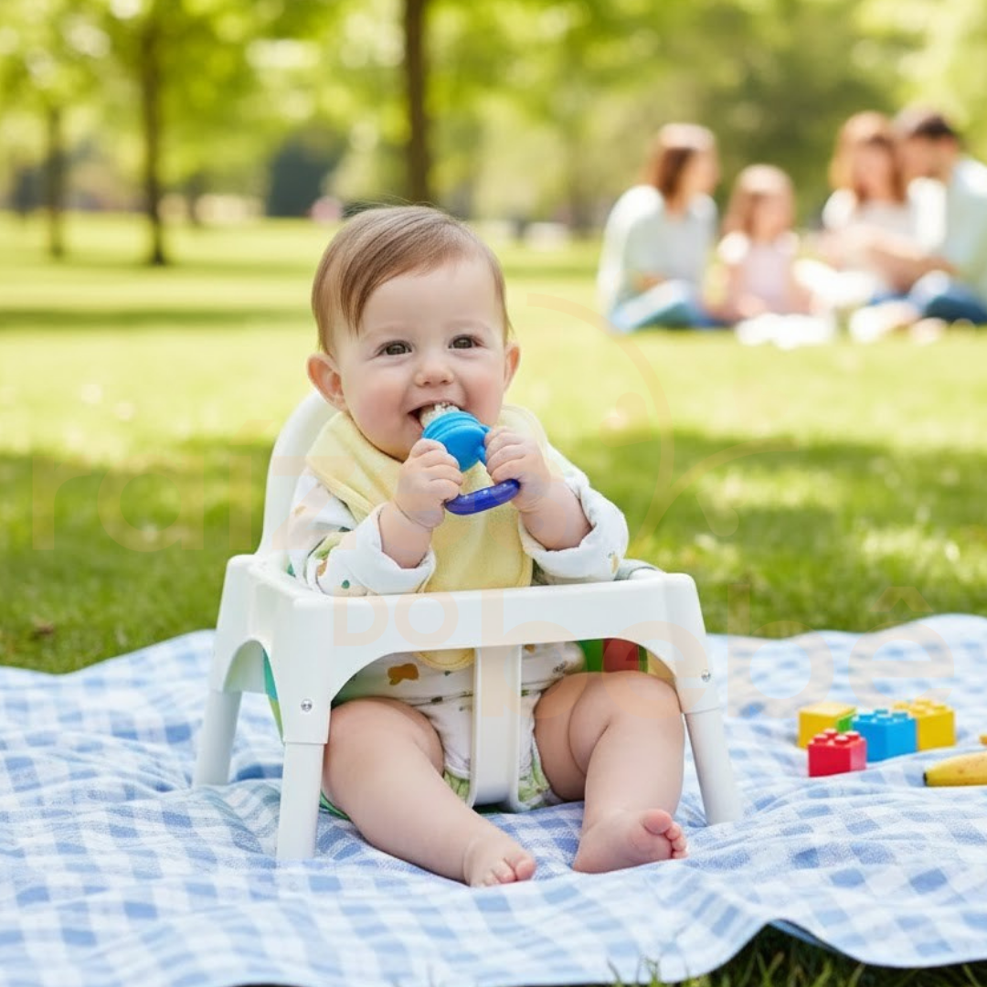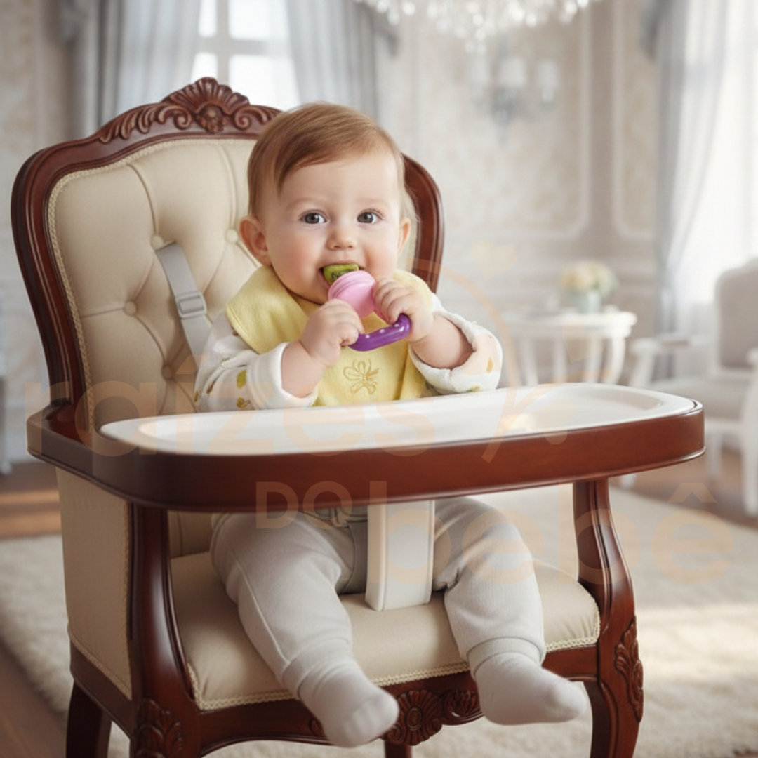 A introdução alimentar é um dos marcos mais emocionantes, mas também um dos que mais geram ansiedade nos pais. Na Raízes do Bebê, queremos que esse momento seja de pura alegria. A Chupeta Alimentadora Nutri-Sabor foi selecionada por nossa especialista, Priscila Svierk, para ser a aliada perfeita na transição para os sólidos.