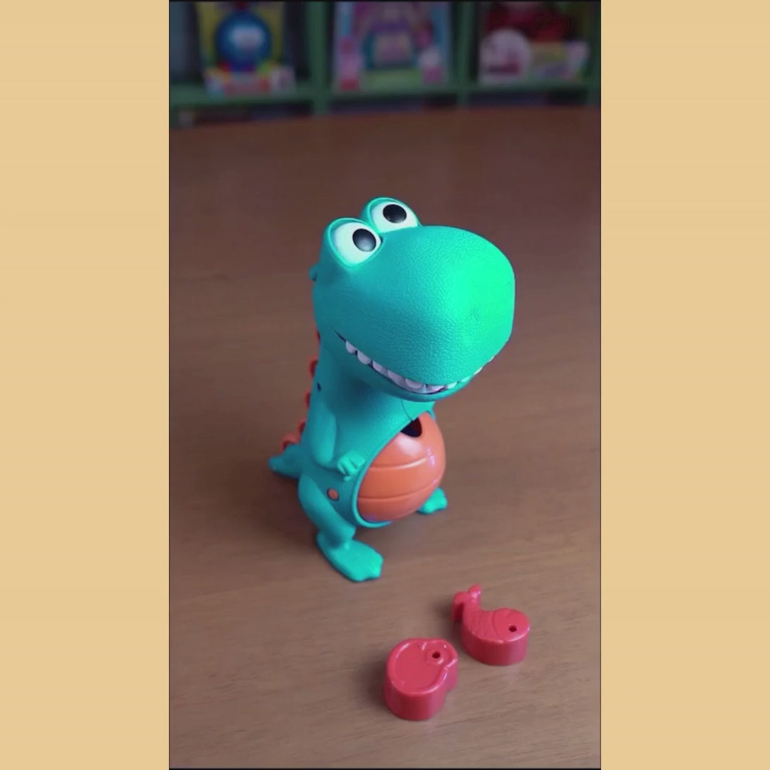 O Dino Papa Tudo vai encantar os pequenos com cores vibrantes, movimento interativo e muita diversão! Basta colocar o alimento na boquinha e ver o Dino “papar” tudo enquanto emite sons que estimulam a curiosidade e a imaginação.