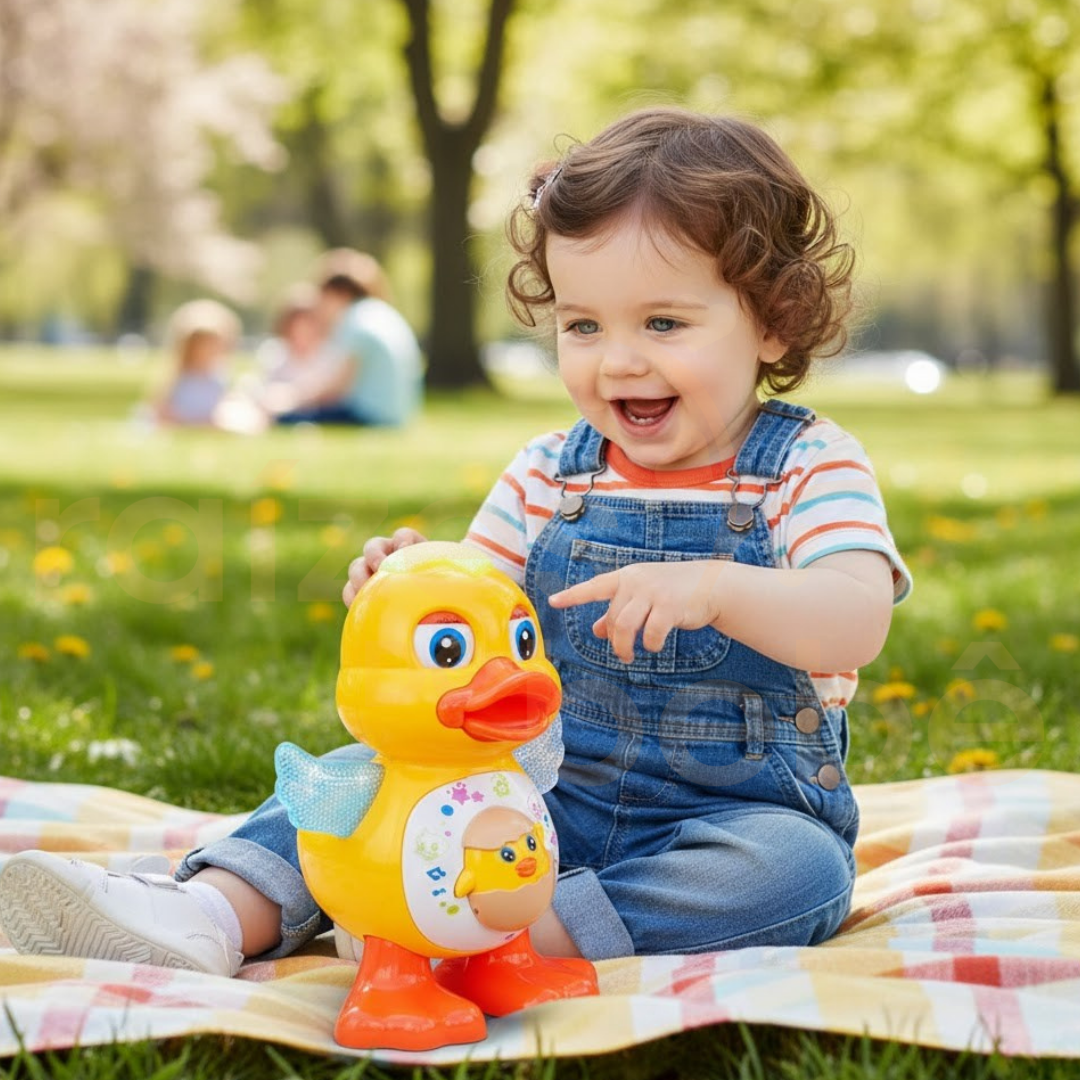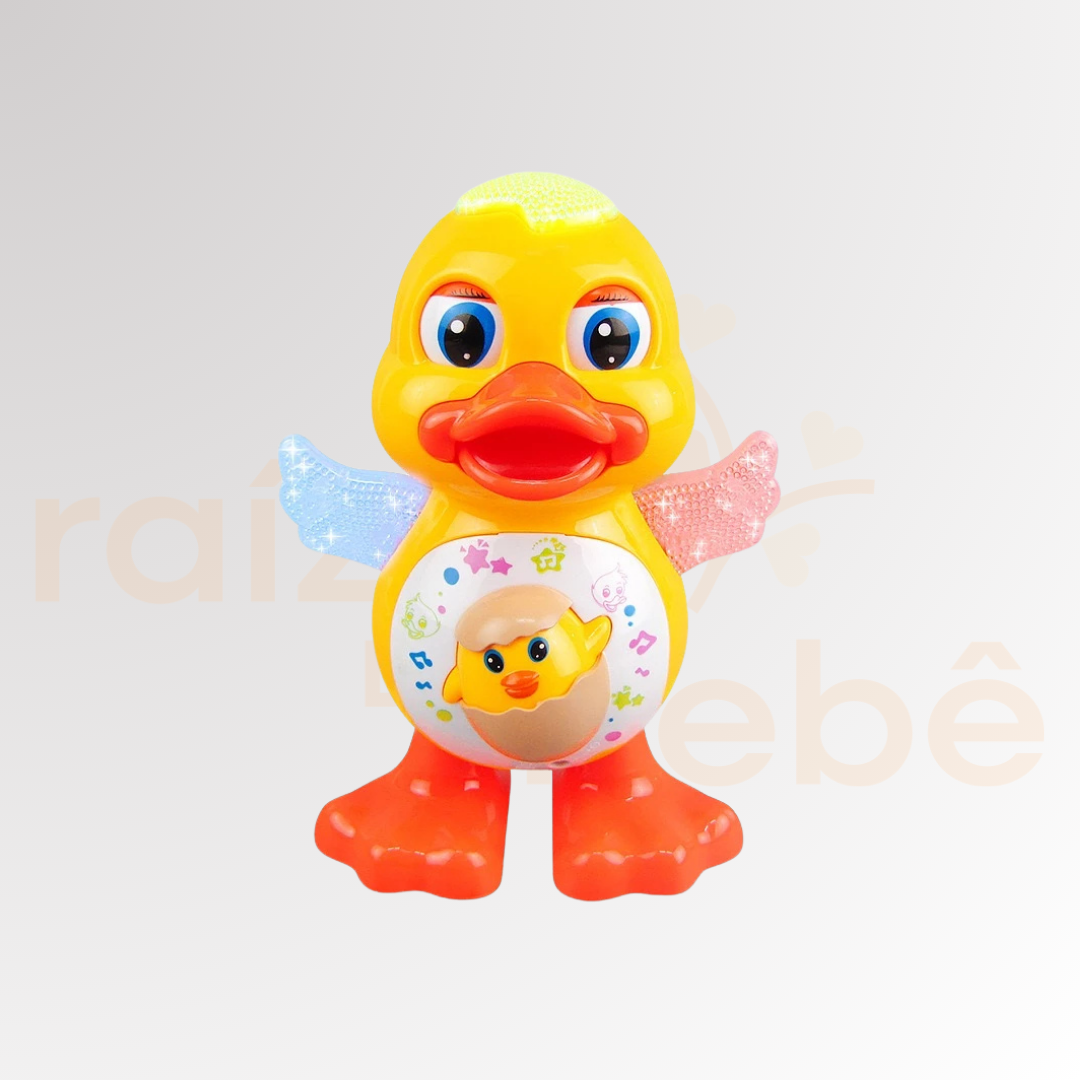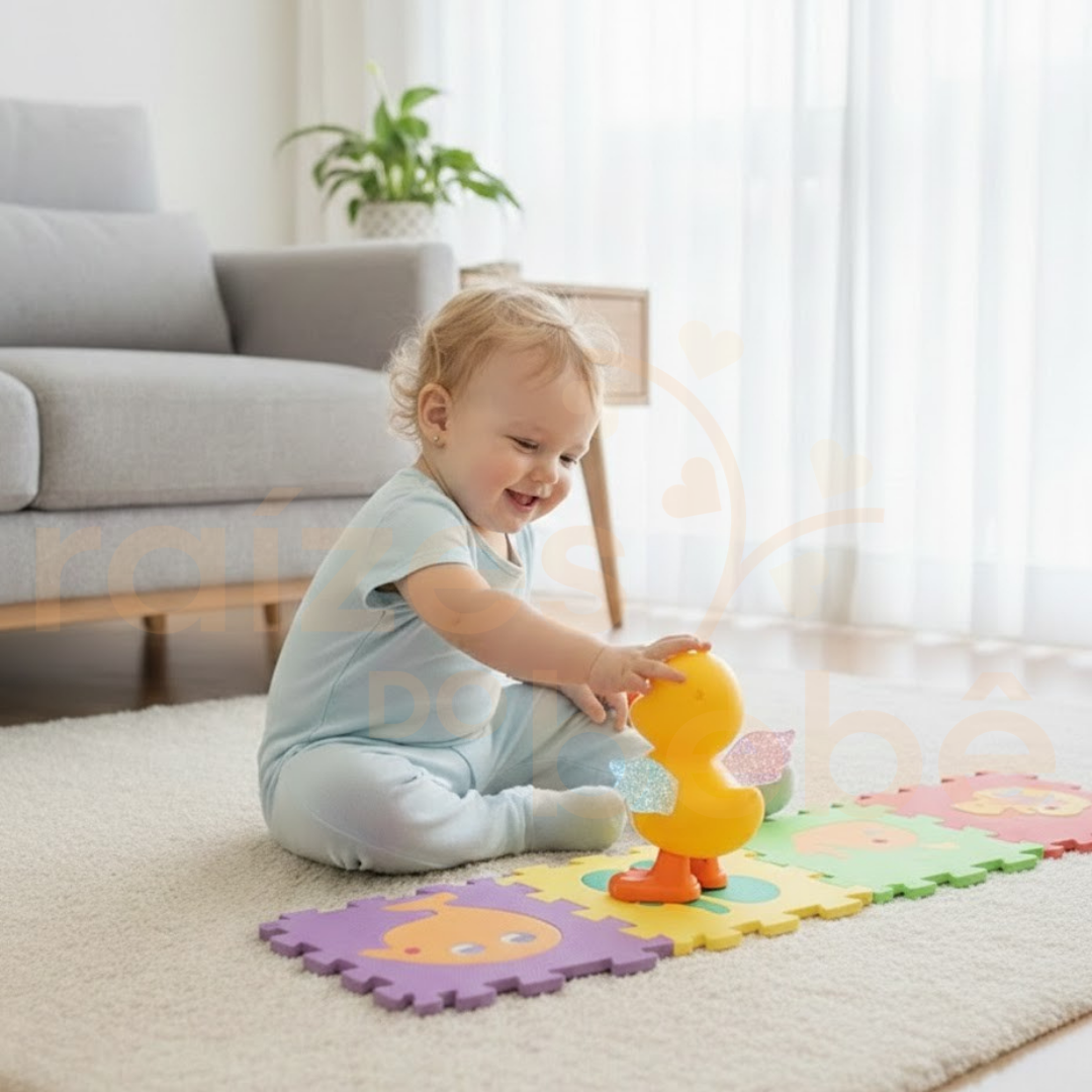 "O estímulo visual e sonoro combinado com o movimento é essencial para o desenvolvimento da coordenação motora grossa. O Patinho Dançarino transforma o exercício de seguir o objeto em uma brincadeira irresistível e educativa."